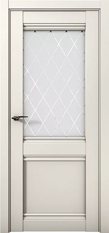 Внутреннее наполнение данной модели выполнено из натурального массива сосны и плиты МДФ. Такое сочетание материалов благоприятно влияет на микроклимат в помещении и не дает развиваться аллергическим реакциям. Дверь покрыта высококачественной пленкой ПВХ, благодаря чему срок службы Пармы 1212 повышается в разы. Одна из двух филенок украшена матовым стеклом, на которое нанесены ромбовидные узоры.