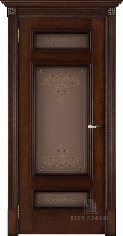 Полотно Рим Кристалл 3 – трехфиленчатое. Стекло используется матовое, на стекло нанесет утонченный узор. Дверь дополнена широким строгим багетом, контрастной фурнитурой: все элементы вместе создают завершенный дизайн этой запоминающейся межкомнатной двери. Не менее важна в общности образа и дверная коробка, состоящая из широких рельефных капителей и карниза.