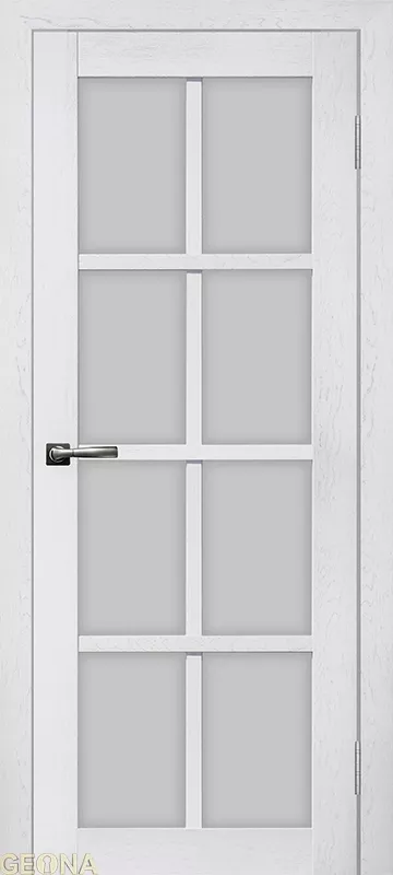 RX — серия дверей современного стиля — входит в СКЛАДСКУЮ ПРОГРАММУ 3 фабрики GEONA. Царговая конструкция дверного полотна имеет толщину 38 мм и покрывается ПВХ. Остекление — сатинат светлый.