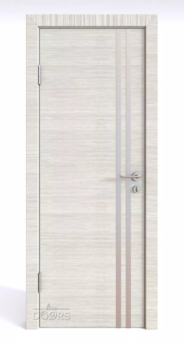 DG-506 Ива светлая с декоративными вставками под алюминий - межкомнатная дверь с алюминиевой кромкой по вертикальным торцам полотна и предустановленным магнитным замком.