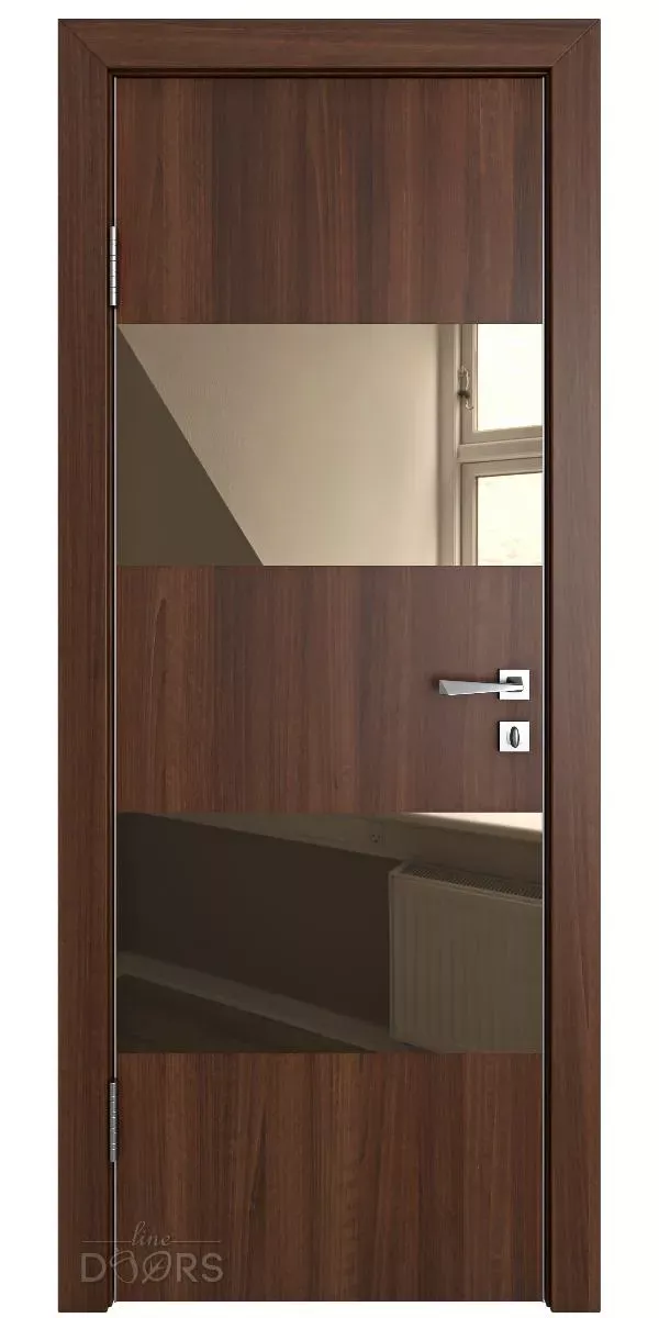 Стильная и современная межкомнатная дверь DO-508 (ДО-508) Орех тисненый с бронзовым или обычным зеркалом предназначена для установки в жилых и общественных помещениях, таких как квартира, частный дом или офис.