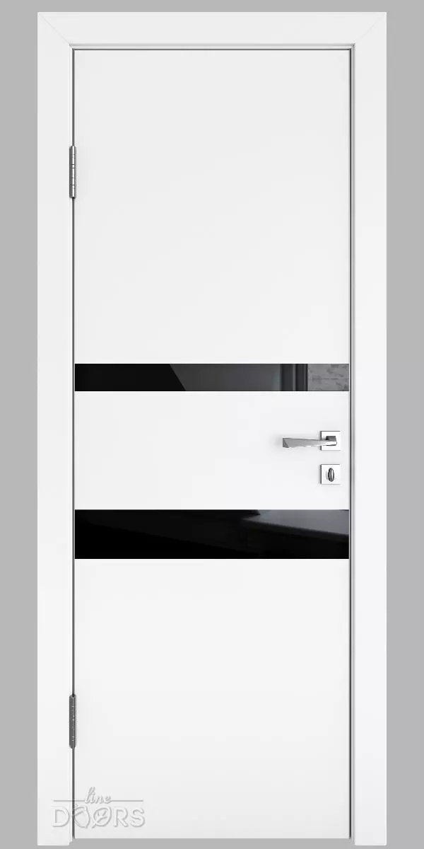 DO-512 Белый бархат с черным стеклом - межкомнатная дверь с алюминиевой кромкой по вертикальным торцам полотна и предустановленным магнитным замком!
