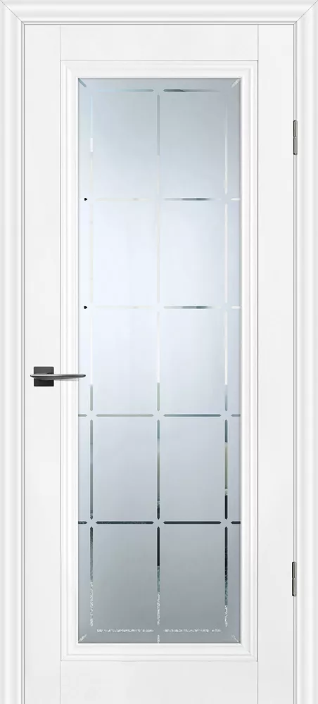 Царговое полотно, выполненное в гладком матовом покрытии, приятным на ощупь, обладающее высокими эксплуатационными характеристиками. Безопасный для здоровья и практичный материал. Бескромочная технология. Сборно-разборная конструкция.###-line-###Полотно комплектуется фигурным багетом и объемной филенкой.