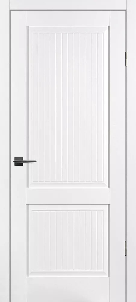 Царговое полотно, выполненное в гладком матовом покрытии, приятным на ощупь, обладающее высокими эксплуатационными характеристиками. Бескромочная технология.###-line-###Полотно комплектуется объемной филенкой с фрезерованным рисунком под рейку . В остекленных полотнах используется рифленное стекло с красивым прокатным узором в виде полос. Отлично смотрится в неоклассических и лофтовых интерьерах.