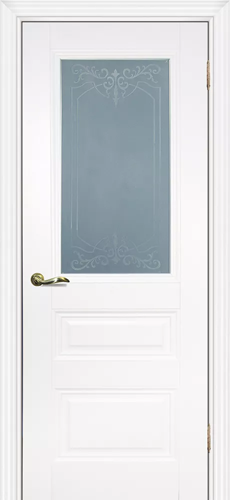 Царговое полотно, выполненное в гладком матовом покрытии, приятным на ощупь, обладающее высокими эксплуатационными характеристиками. Безопасный для здоровья и практичный материал. Бескромочная технология. Сборно-разборная конструкция.###-line-###Полотно комплектуется фигурным багетом и объемной филенкой.
