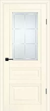Царговое полотно, выполненное в гладком матовом покрытии, приятным на ощупь, обладающее высокими эксплуатационными характеристиками. Безопасный для здоровья и практичный материал. Бескромочная технология. Сборно-разборная конструкция.###-line-###Полотно комплектуется фигурным багетом и объемной филенкой.