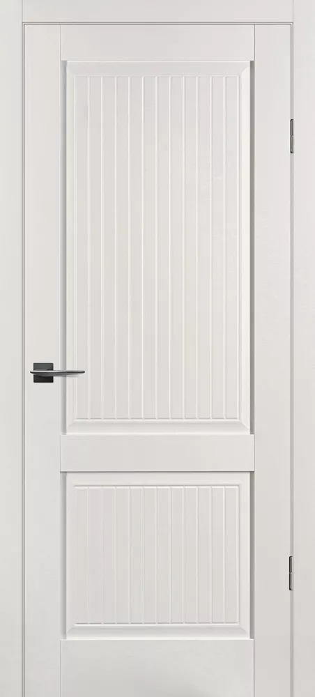 Царговое полотно, выполненное в гладком матовом покрытии, приятным на ощупь, обладающее высокими эксплуатационными характеристиками. Бескромочная технология.###-line-###Полотно комплектуется объемной филенкой с фрезерованным рисунком под рейку . В остекленных полотнах используется рифленное стекло с красивым прокатным узором в виде полос. Отлично смотрится в неоклассических и лофтовых интерьерах.